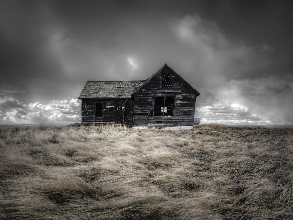 A Central Montana homestead sits under unsettled skies in late winter. These beautiful, increasingly-rare buildings all tell a story, and some of them seem sad to me. Standing before this house, I could image children playing in the yard and the clink of dishes in a sink.