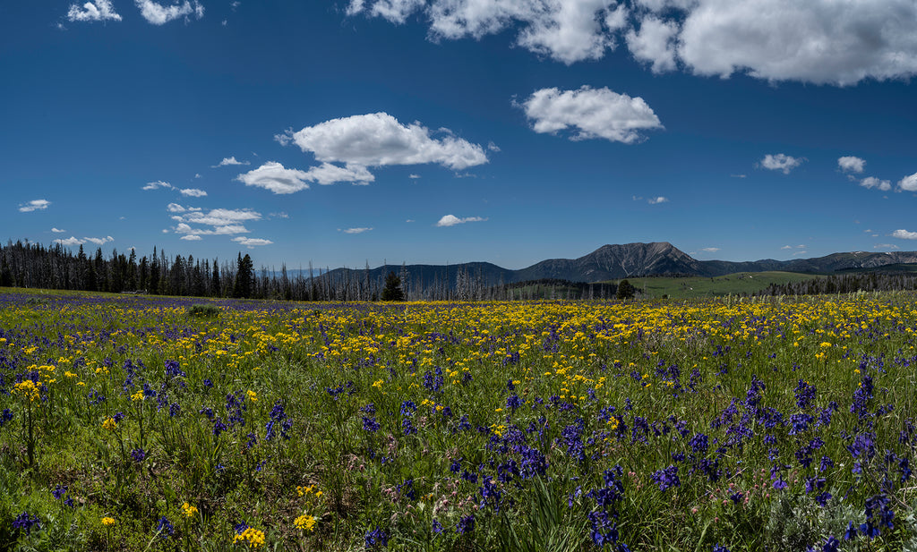 Summer cotton clouds drift through and azure sky over a meadow full of wildflowers in Montana's Gravelly Mountain Range. This photo has a remarkable depth and wonderful contrasting colors and is offered as a limited edition in various sizes, each limited to 10 prints. Every piece ships free to the lower 48 and comes signed and numbered.