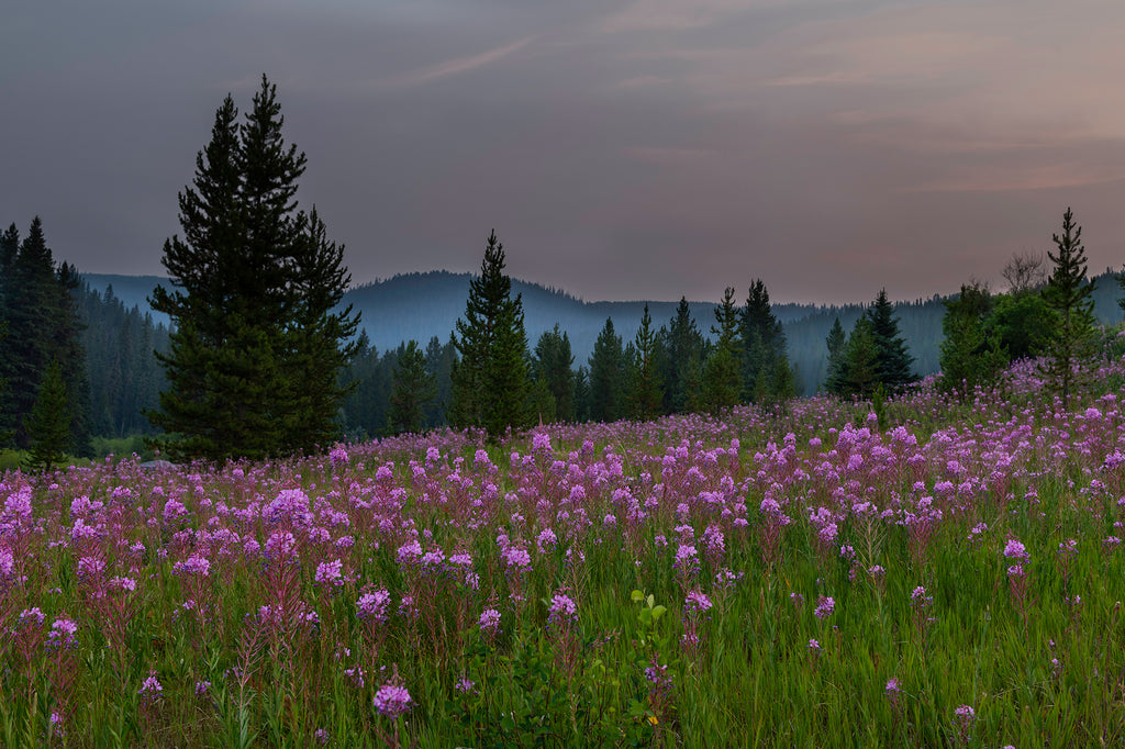 High in the Gallatin Mountains of Montana, a field of fireweed greets a new dawn while smoke fills a valley in the background. This photograph has a beautiful, haunting feel, full of the beauty of flowers and a hint of danger on the horizon.