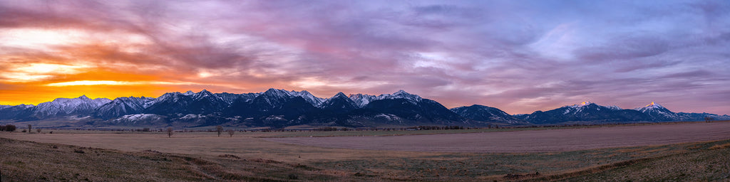 An early-spring sunrise greets the Absaroka Beartooth Range and Paradise Valley in SW Montana. This is a 4:1 panorama shot with my 102 megapixel Fuji for unmatched color smoothness and detail. It's offered in a variety of sizes as an archival-quality paper print and also ready-to-hang aluminum for that frameless, edge-to-edge look. Each size is limited to 11 prints, comes signed and numbered, and ships free to all lower 48 states.