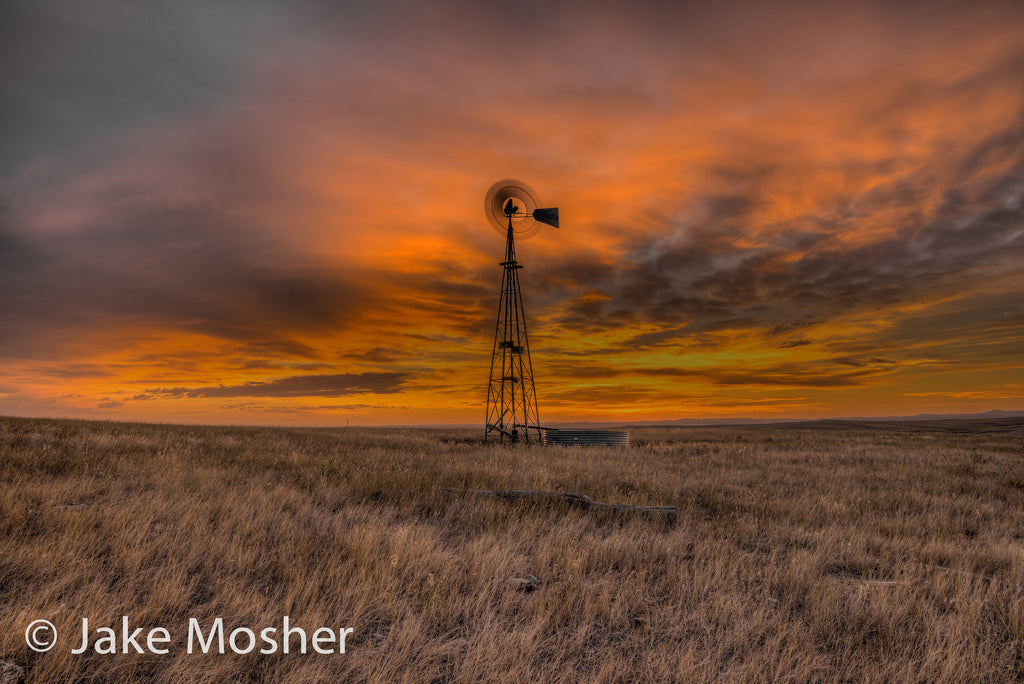 A long exposure allowed me to capture the whirling blades of this windmill during a colorful, Montana sunrise. These windmills power pumps which feed water into stock tanks for cattle and allow grazing in the semi-arid eastern prairies.