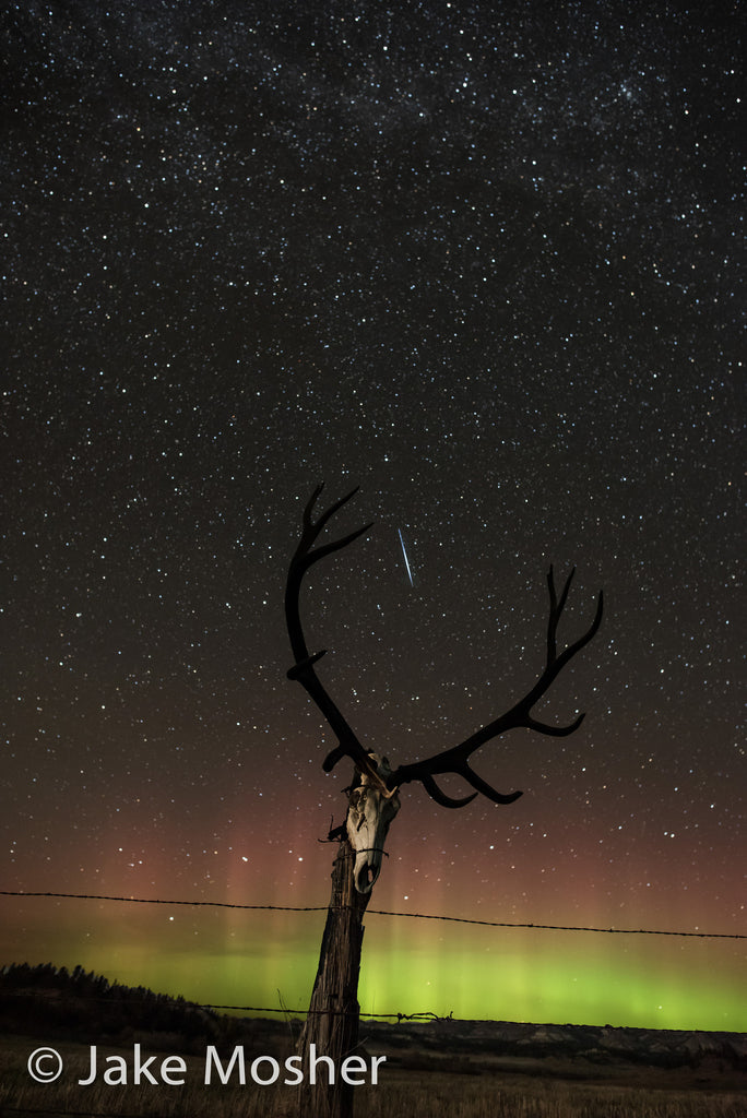 This photograph was the cover for the Jan / Feb 2016 issue of the Rocky Mountain Elk Foundation's Bugle Magazine. I selected it from over 800 exposures I took one October evening in Eastern Montana while making a star trails image which is also for sale here. Shipping is not included in price of framed prints.