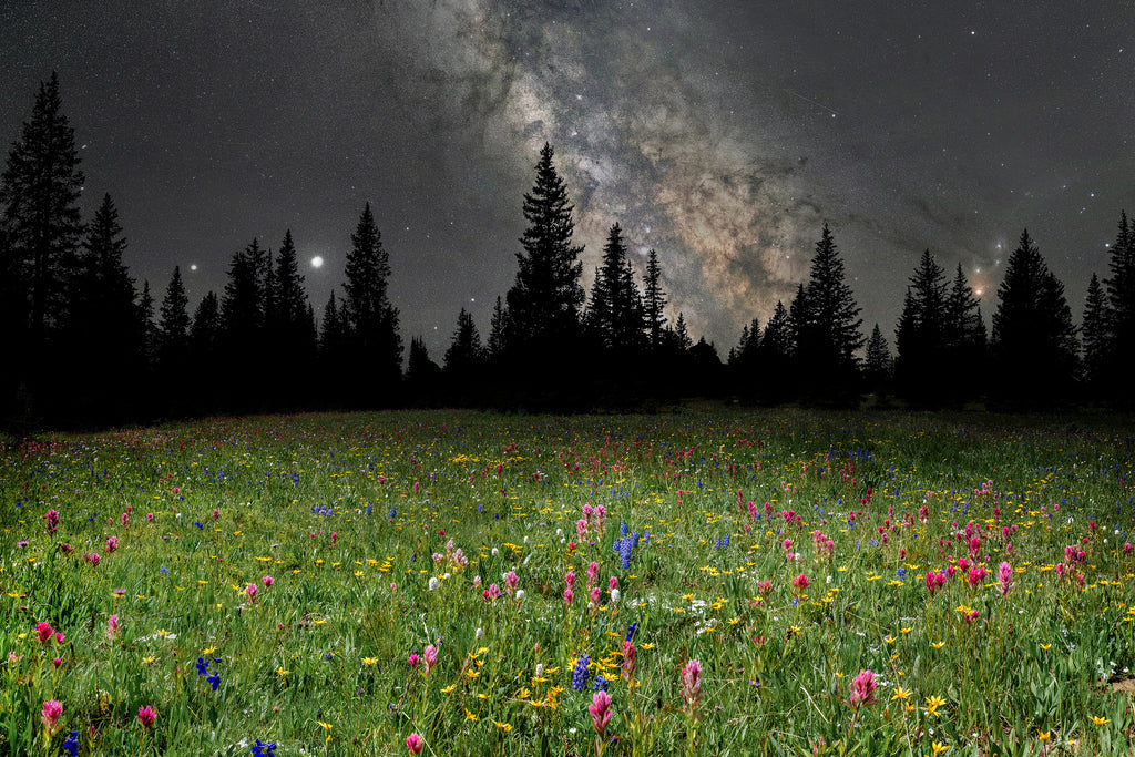 For five years, cloudy nights, too large a moon, or a schedule that didn't permit me hitting the wildflower bloom just right prevented me from taking another shot at this photograph. I spent plenty of time in the Big Horns, photographing plenty of wildflowers, deciding this meadow is exactly where I wish my ashes to be scattered some day, but was unable to capture the scene I knew I wanted to share.