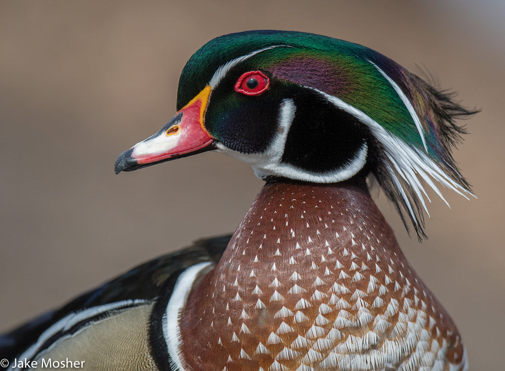 This drake wood duck looks like he just woke up. One of Montana's most colorful birds is shown here in amazing, close-up detail. S