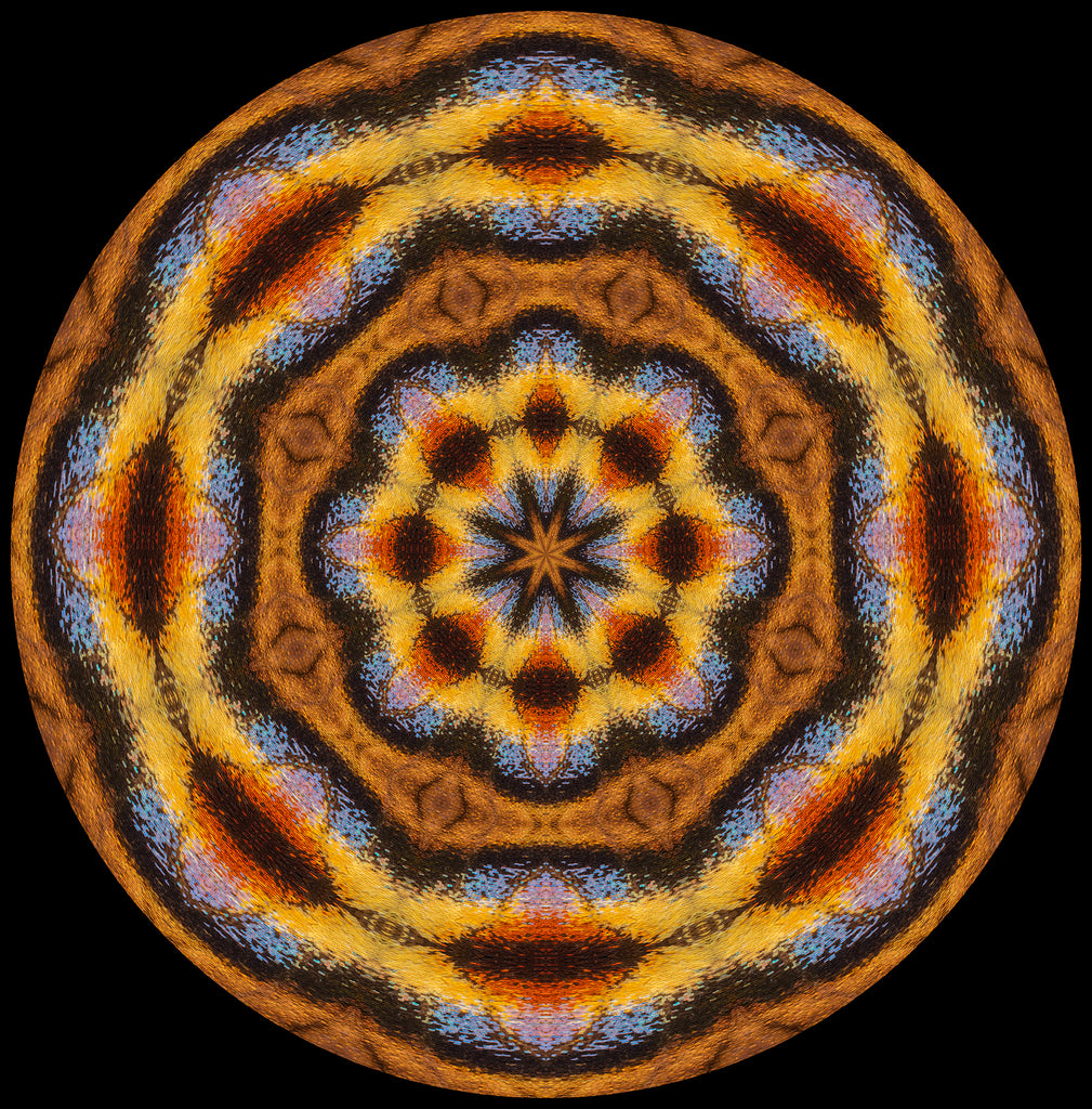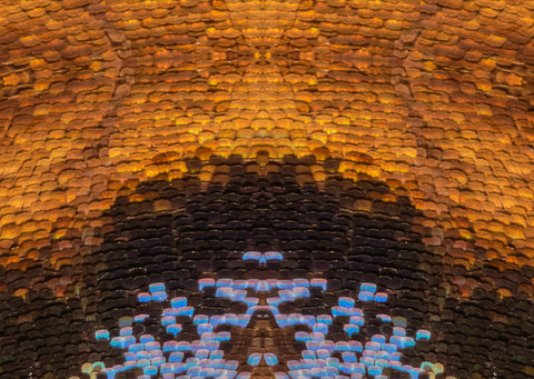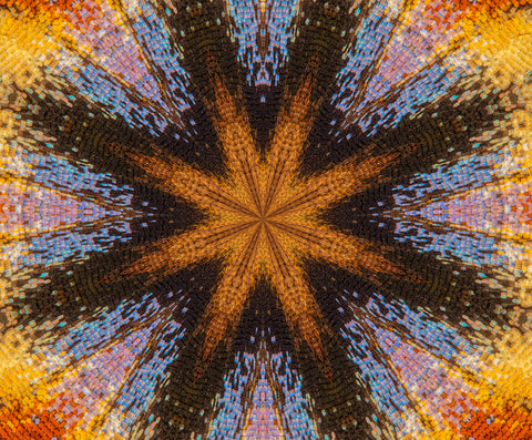 From hundreds of 4:1 macro photos of a peacock butterfly's wing, comes this beautiful design. This is one of my most colorful creations, full of vibrant, 100% natural hues, built from the combination and replication of several thousand photographs.