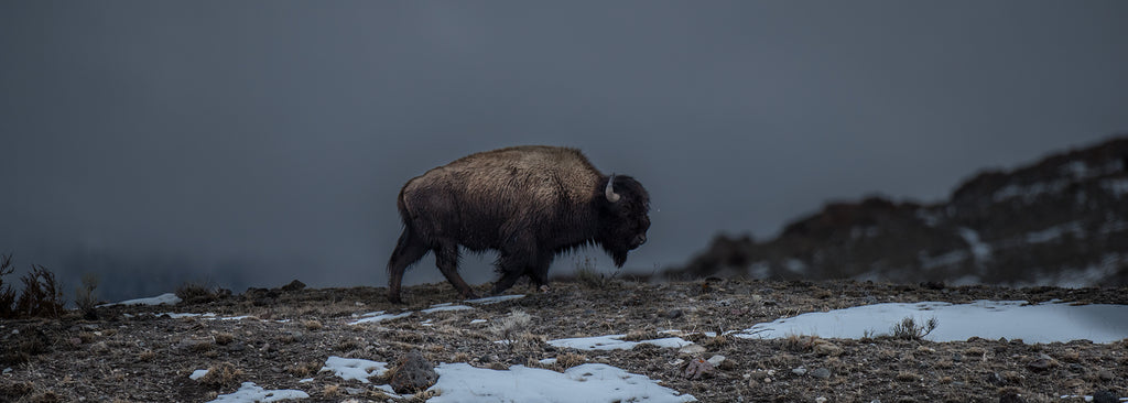 In the last seconds of the day, weak sun broke through the clouds and touched this lone bison's back as it worked along a ridge during Montana's late winter. This photo is what I would call photographic art, a fair representation of a rare moment in Nature when the lighting is perfect and the subject is one sure to stir emotion.
