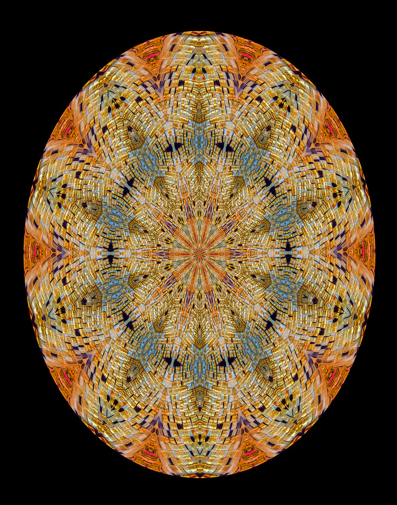 From the most colorful insect in the world, Madagascar's day-flying sunset moth, comes this beautiful design made of hundreds of actual photographs.