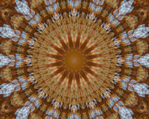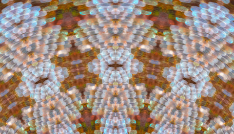 From the blue clipper butterfly, comes this completely natural pattern formed from hundreds and hundreds of 4:1 macro photographs. This image is the perfect blend of complex, symmetrical pattern, glowing, opal-like color, and amazing detail.