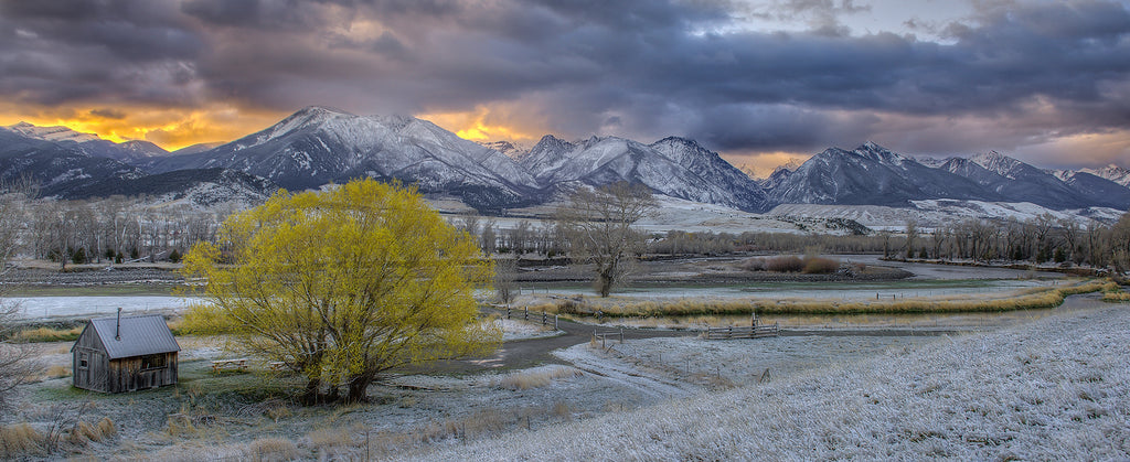 A time of in-betweens, early spring in Montana showcases both winter and something that isn't. This is a stunning, landscape panorama that epitomizes the right place at the right time. It's offered in two sizes here and can be done in other custom sizes upon request.
